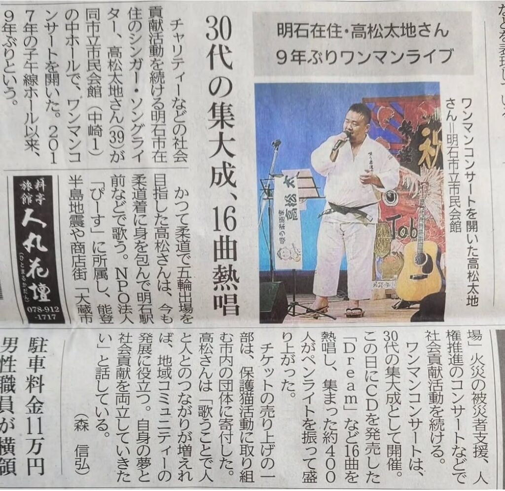 3. 【2026.4.18】高松太地ワンマンコンサート 神戸新聞様掲載!